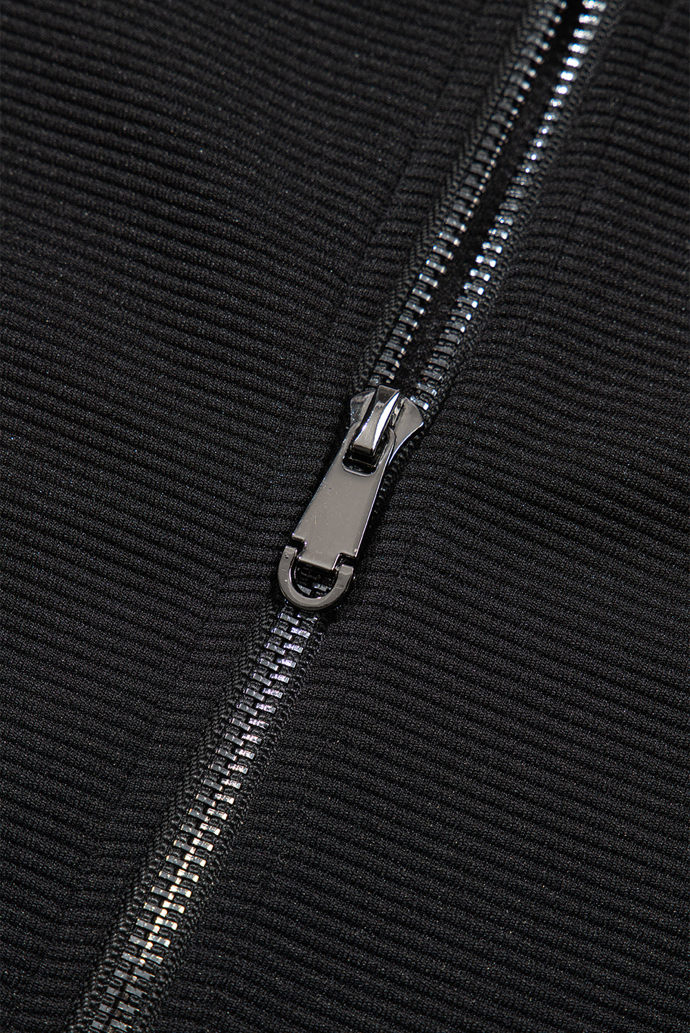 Black Textured Ruffled Sleeve Zipped Top and Wide Leg Pants Set