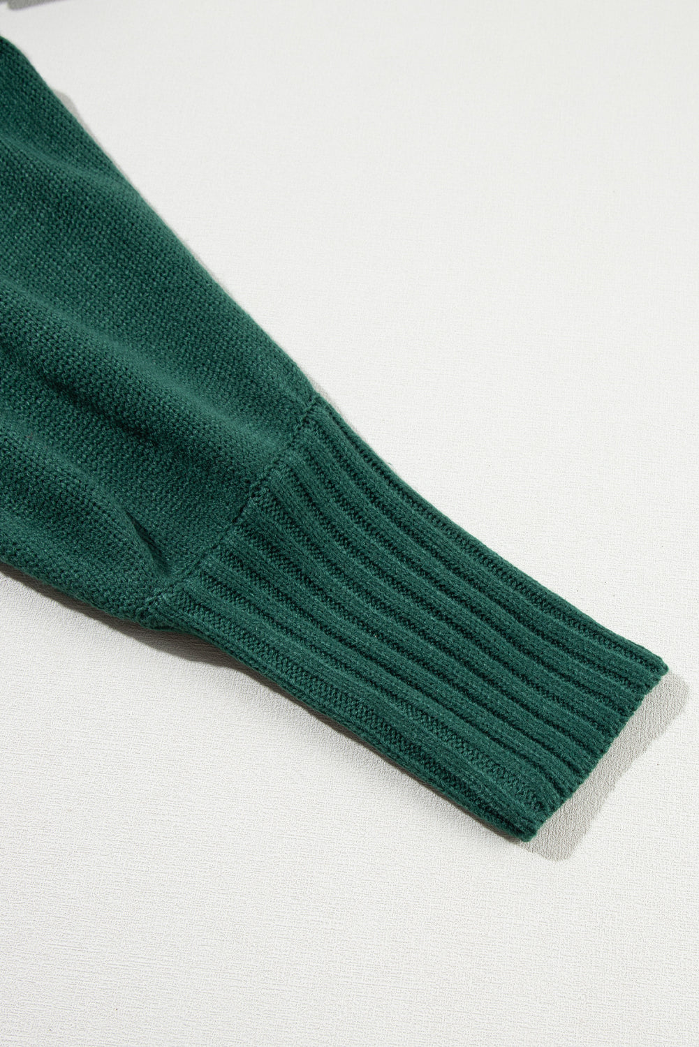 Blackish Green Merry Letter Embroidered High Neck Sweater