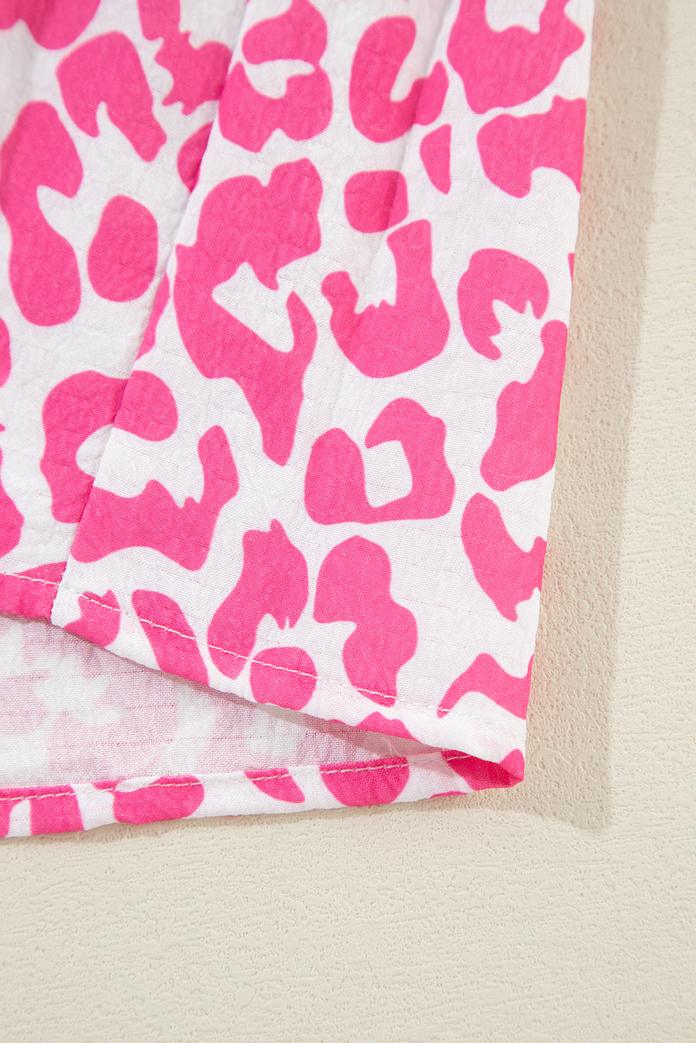 Bright Pink Leopard Printed Long Sleeve Buttoned Front Mini Dress