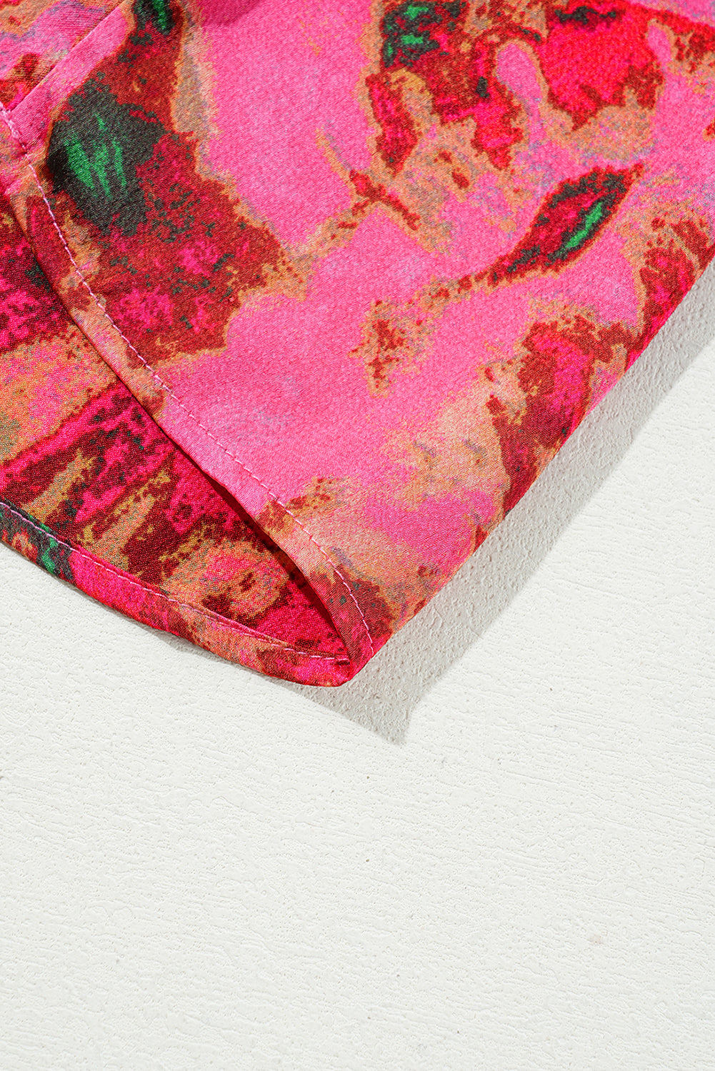 - This blouse top is attention-getting with an abstract print and a glowing hue.